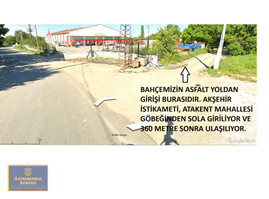 BAHÇEMİZ ÇOK MERKEZİ BİR KONUMDA YER ALMAKTADIR, AKŞEHİR ATAKENT MAHALLE GİRİŞİ KARŞISINDA, AKŞEHİR İLÇESİNİN İSE 4 KM KADAR MESAFEDEDİR. RESMİ KADASTRO YOLU VARDIR. DUBLE YOL VE ASFALTIN BİR KAÇ YÜZ METRE YAKININDADIR.
