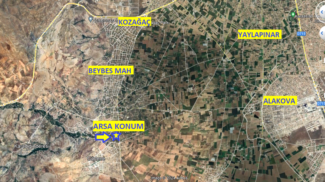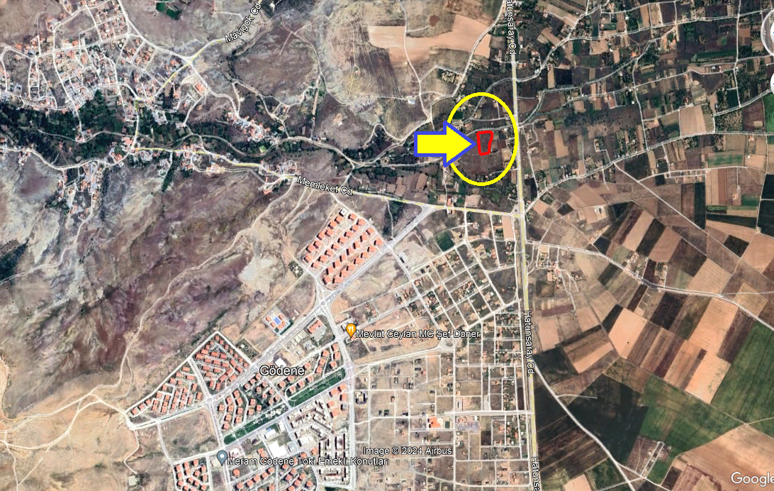 SÖZ KONUSU ARAZİMİZ MERAM GÖDENE MAHALLESİNDEDİR. HATIP CADDESİNE 100 METRE MESAFEDE, YENİ ÇEVRE YOLUNA ÇOK YAKIN VE İMAR BEKLENEN BÖLGEDEDİR.