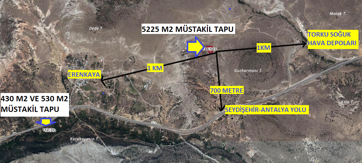 152 ADA 35 PARSELDE 530 M2 - 152 ADA 40 PARSELDE 430 M2 OLMAK ÜZERE TOPLAMDA 960 M2 İKİ ADET MÜSTAKİL TAPULU BAHÇEMİZ BULUNMAKTADIR ERENKAYA MAHALLESİNİN HEMEN ALTINDA ANTALYA-SEYDİŞEHİR YOLUNA 60 METRE MESAFEDE DEREYE CEPHE KONUMDADIR.