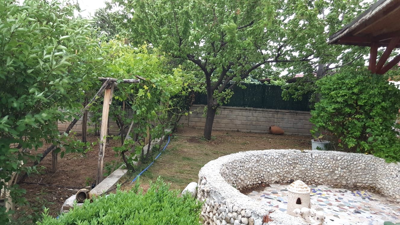 mutfaklı evimizde, yaz- kış kalınabilir. Bahçe içerisinde süs havuzu mevcuttur.