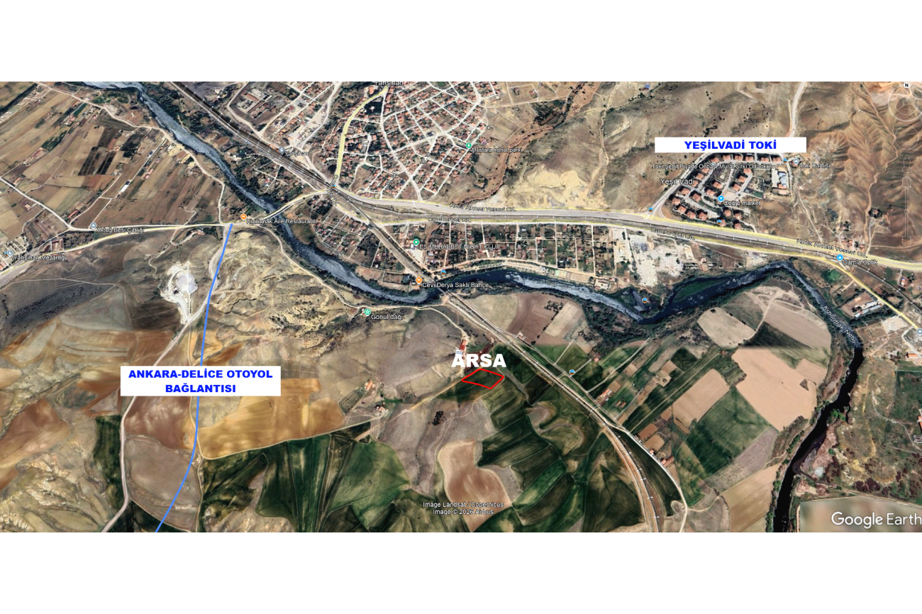 TRAFİK YOĞUNLUĞUNU AZALTMAK ADINA ANKARA-DELİCE ARASINA OTOYOL ÇALIŞMASI BAŞLATILMIŞ VE İHALESİ BİTMİŞ DURUMDADIR. YAPILACAK OLAN ÇEVRE YOLU SÖZ KONUSU ARSALARIMIZIN ÜST KISMINDAN GEÇMEKTEDİR.